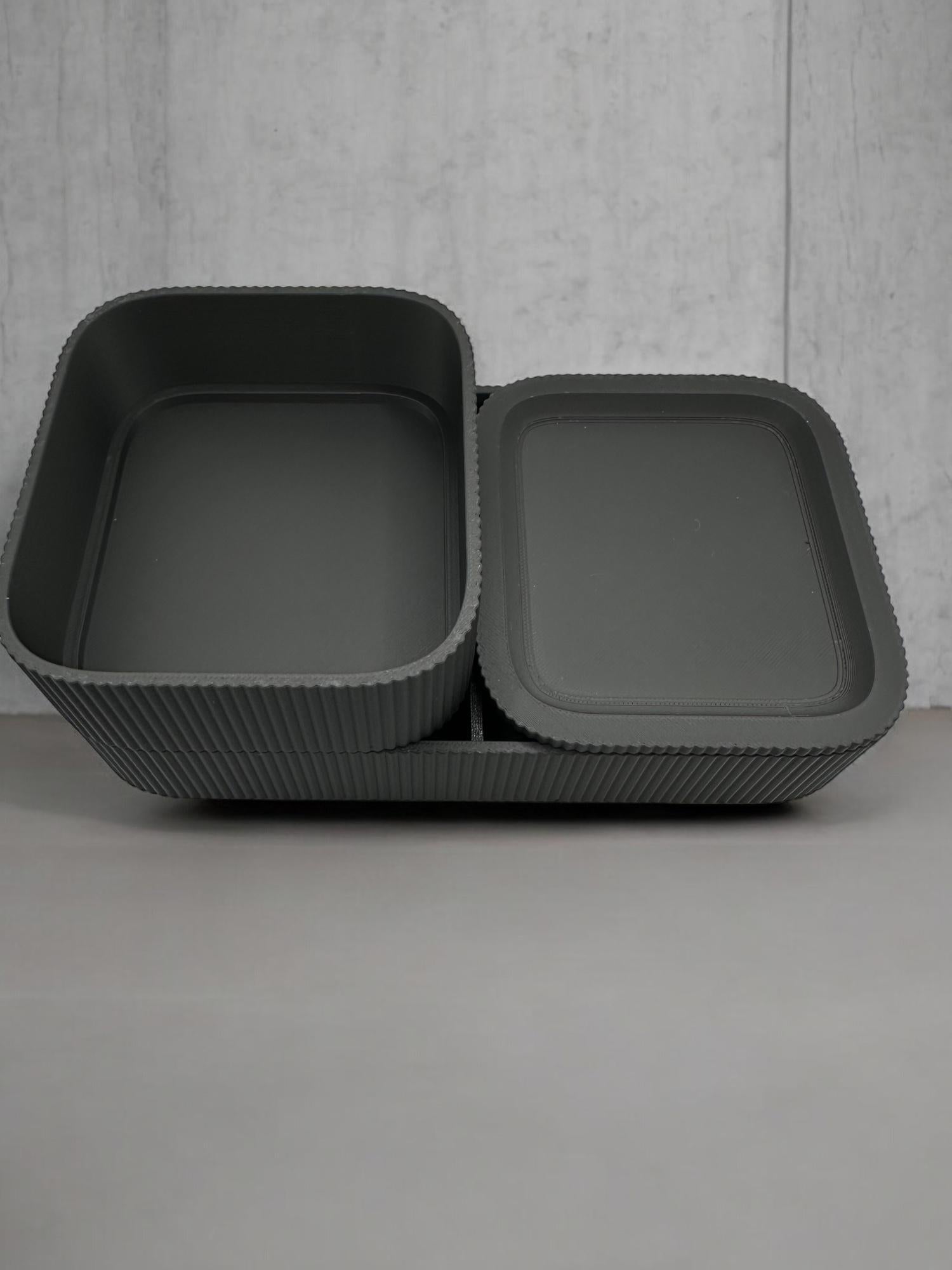 3D Printed Stackable Storage Box Set - Ribbed Desk Organizer