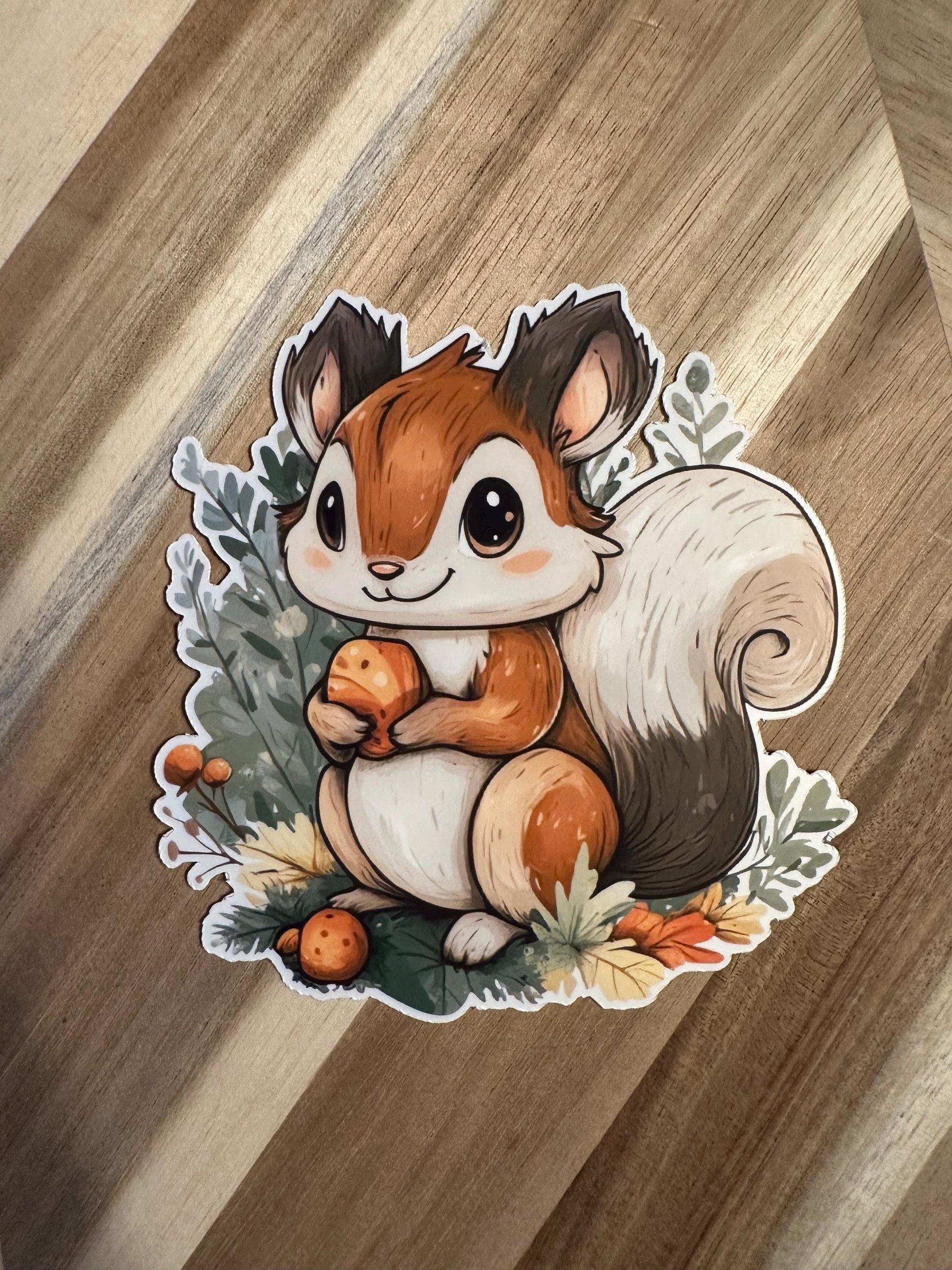 Bring the magic of the autumn forest to your everyday items with this adorable acorn-loving squirrel sticker! This premium die-cut vinyl sticker features a charming red squirrel nestled among seasonal foliage, perfect for nature enthusiasts and woodland creature collectors.