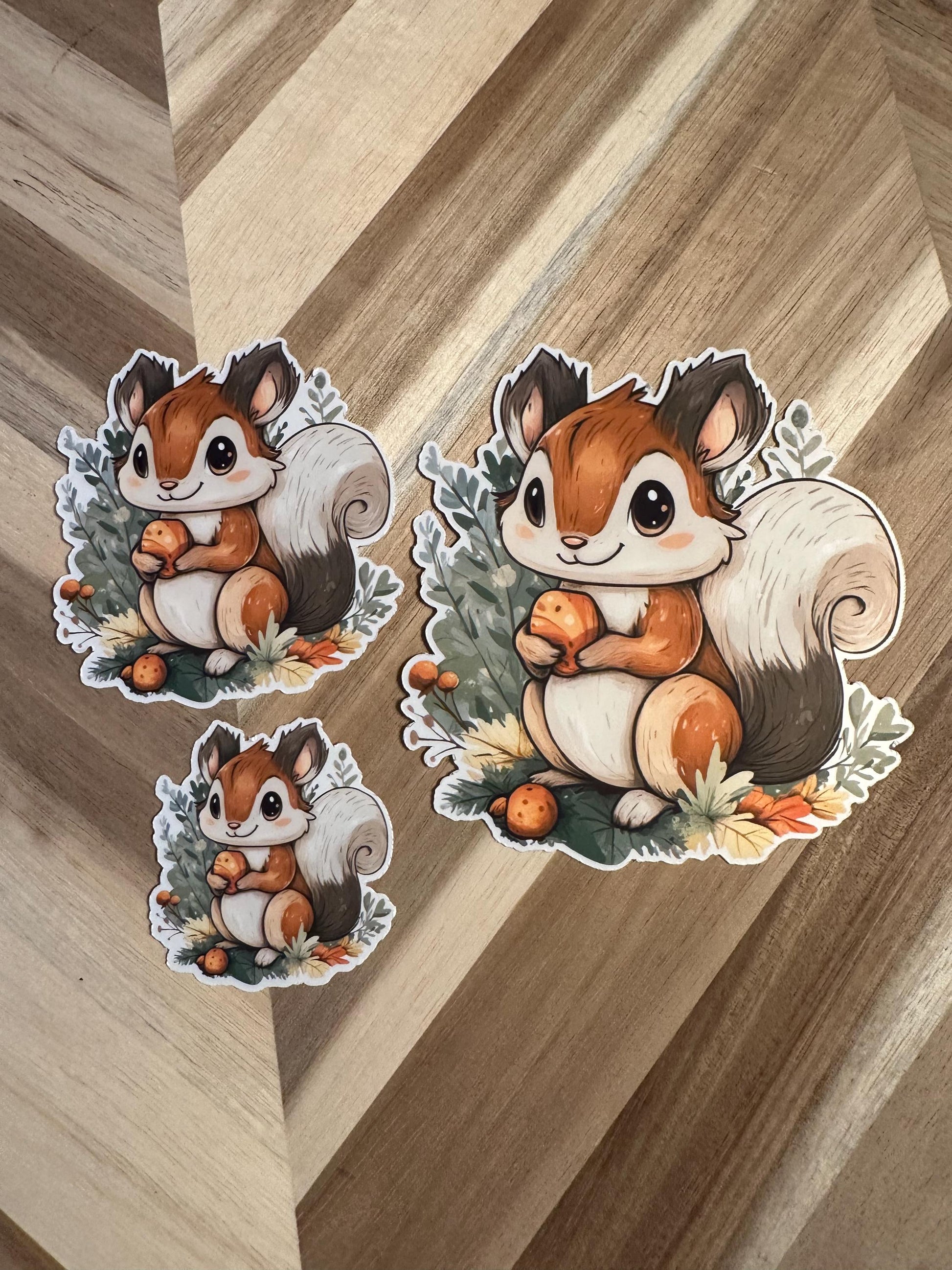 This squirrel sticker is part of our Forest Friends Collection. Browse our shop for matching woodland creatures including foxes, raccoons, deer, and more forest dwellers!