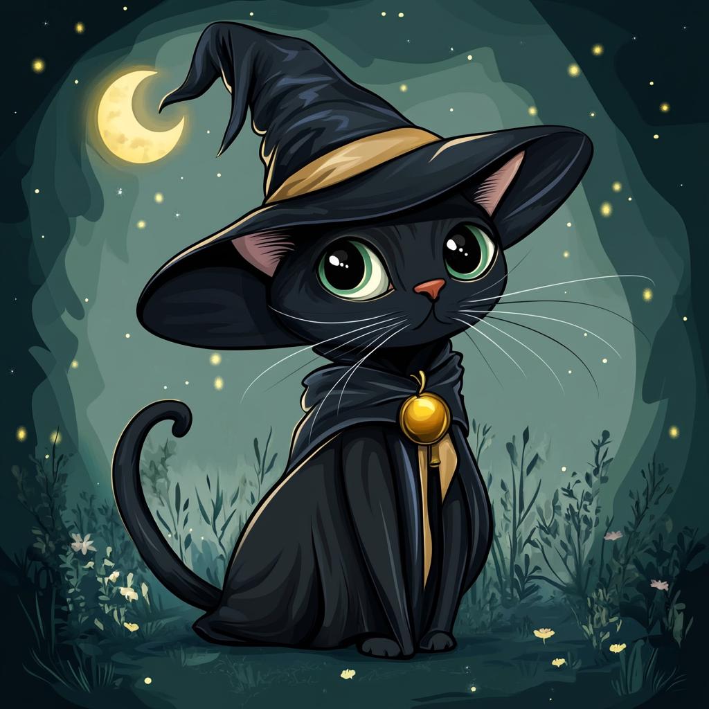 - Halloween Fantasy Design - Magical black cat with witch elements and mystical charm