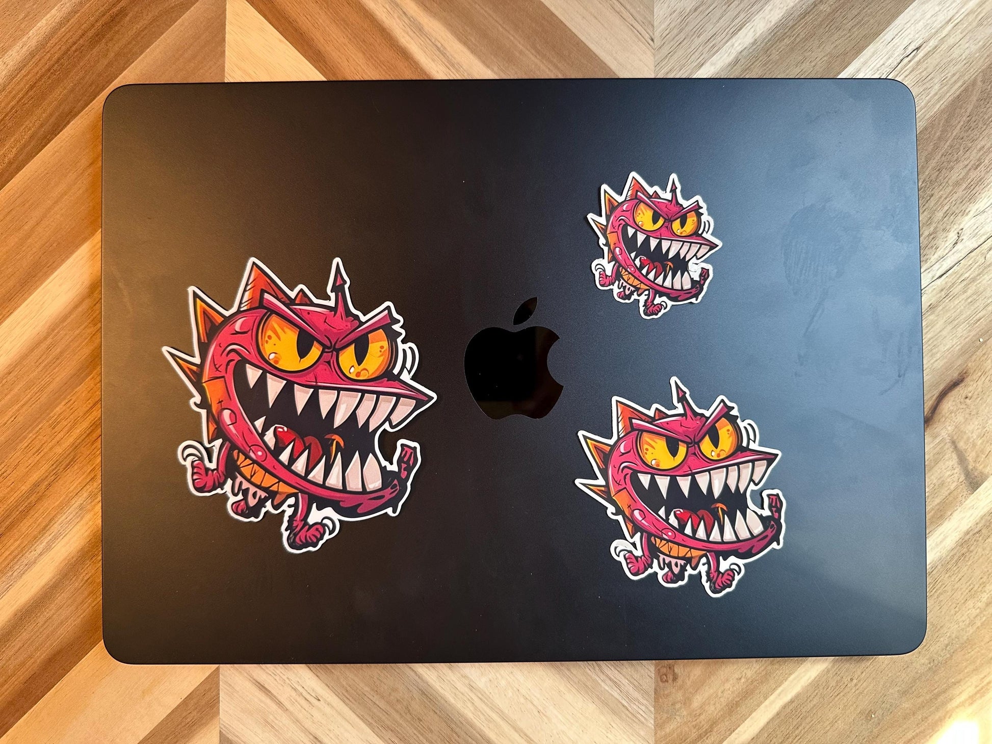 Add some mischievous charm to your gear with this vibrant red mimic monster vinyl sticker! Featuring glowing yellow eyes, razor-sharp teeth, and a devious grin, this feisty little creature is ready to chomp its way into your collection.