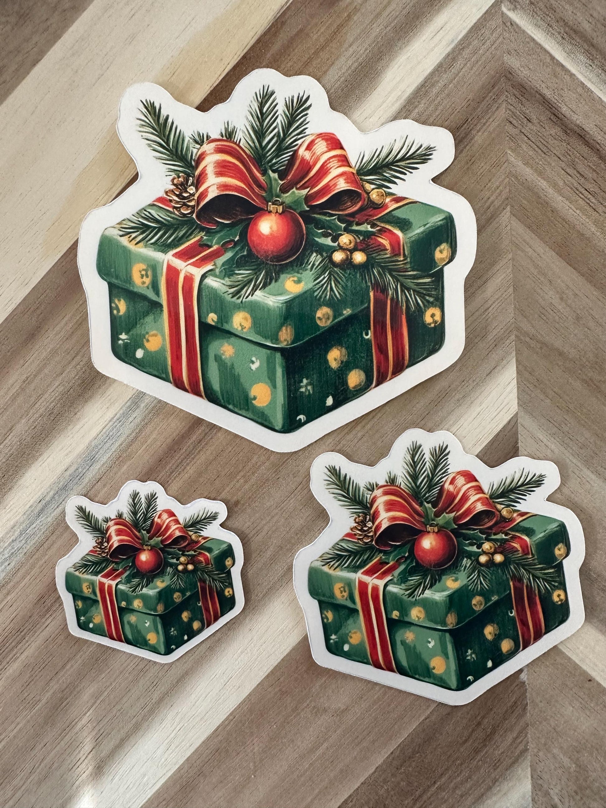 Vintage Christmas Present Die-Cut Sticker | Holiday Gift Box Design