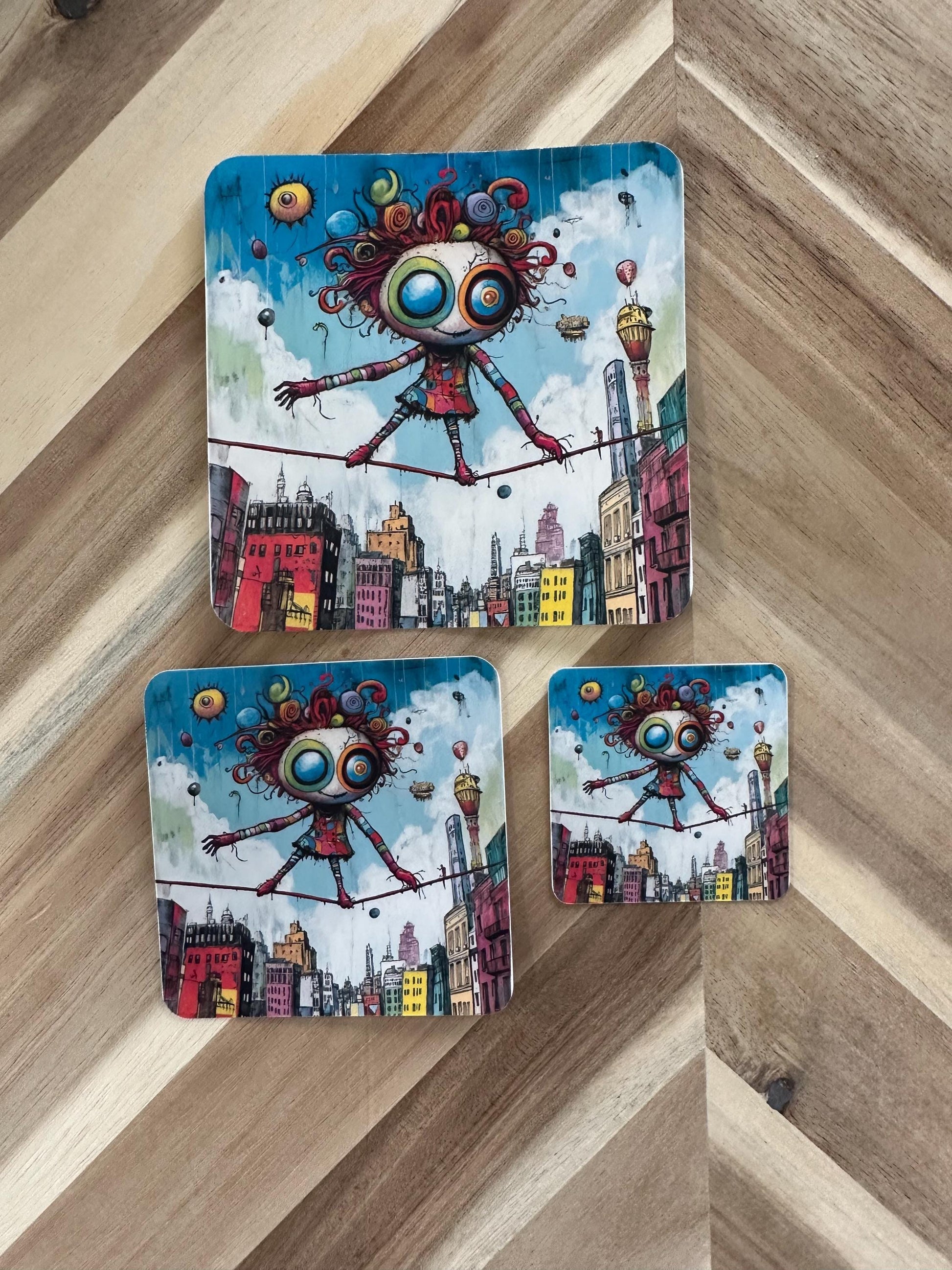 Find your balance and embrace the whimsy! This charming tightrope walker brings circus magic wherever you stick it.